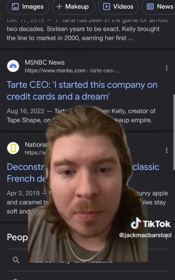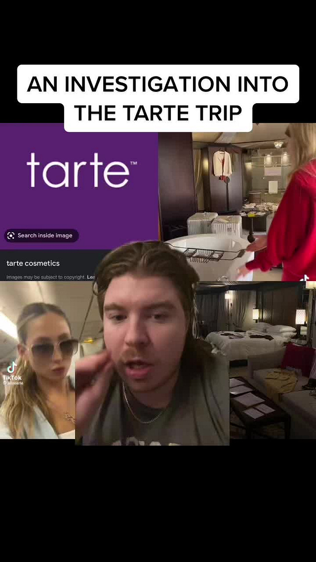 One of the early posts questioning the Tarte trip came from Bartstool Sports blogger and content creator Jack McGuire. In McGuire’s first Tarte video, which now has 6.6 million views, he says, “There’s something going on with this Tarte trip, and I’m gonna get to the bottom of it.”