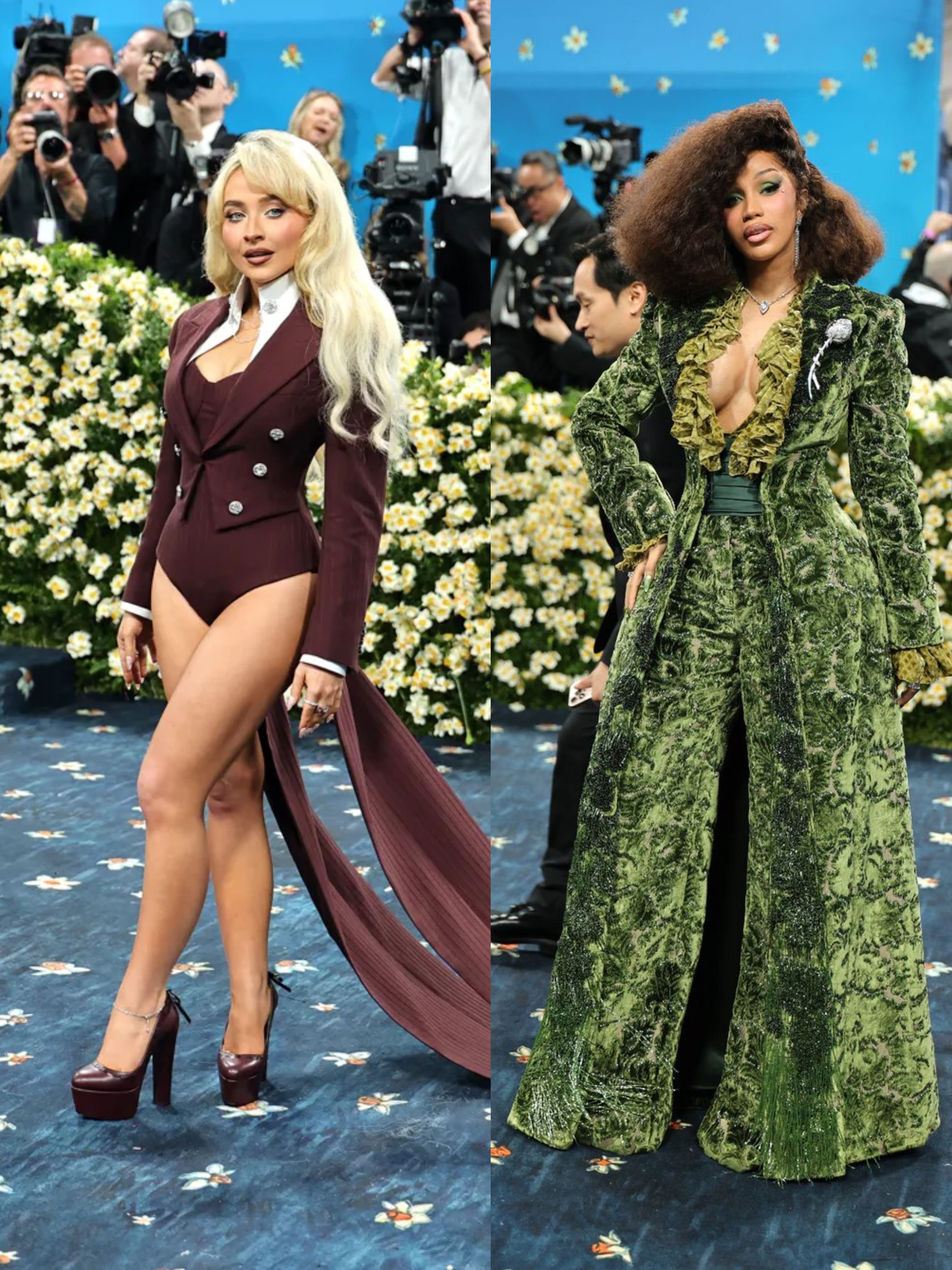 Sabrina Carpenter wore no pants to the Met Gala because Pharrell, who designed her Louis Vuitton look, short-shamed her. “He was like: ‘You’re quite short, so no pants for you.’ So here we are,” she said on the Vogue livestream. Many pointed out that Cardi B, who’s three inches taller at 5’ 3”, looked elongated in her green Burberry coat and wide-leg trousers.