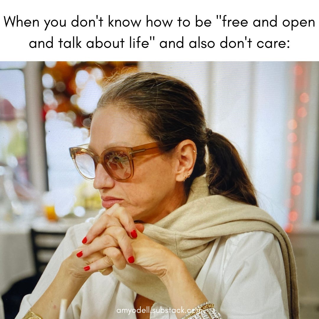 Yet, when Erin serves the women no food but caviar, does Jenna reveal any of her true feelings on hors d'oeuvres? No. This polite restraint enables her to mesh with the cast — but also completely throws them. Erin introduces Jenna as “a total enigma,” explaining, “she doesn’t like dill but loves parsley” and “she likes olives but not the black ones.”