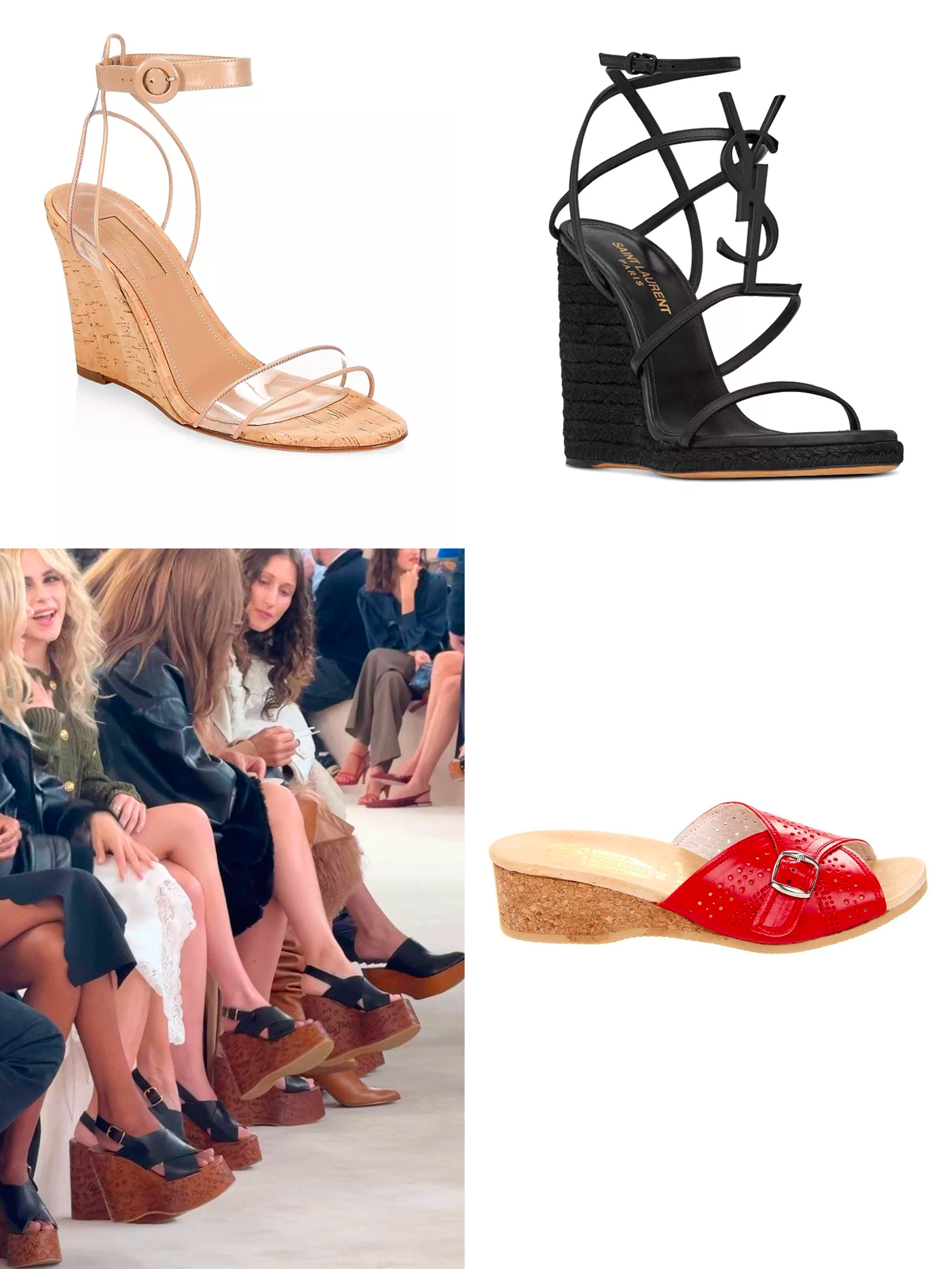 Wedges are all over the shoe trend roundups on fashion magazine websites, although my friend who’s a stylist says this is “a fake trend SEO shopping play” (meaning, for affiliate kickbacks). While I’m sure she’s right, the wedge had a moment at the latest Chloé show in Paris, where a slew of front-row women were seen wearing the same blocky wooden wedges, the kind that could do some real damage to the shins of their enemies. Other wedges in the spotlight these days include: