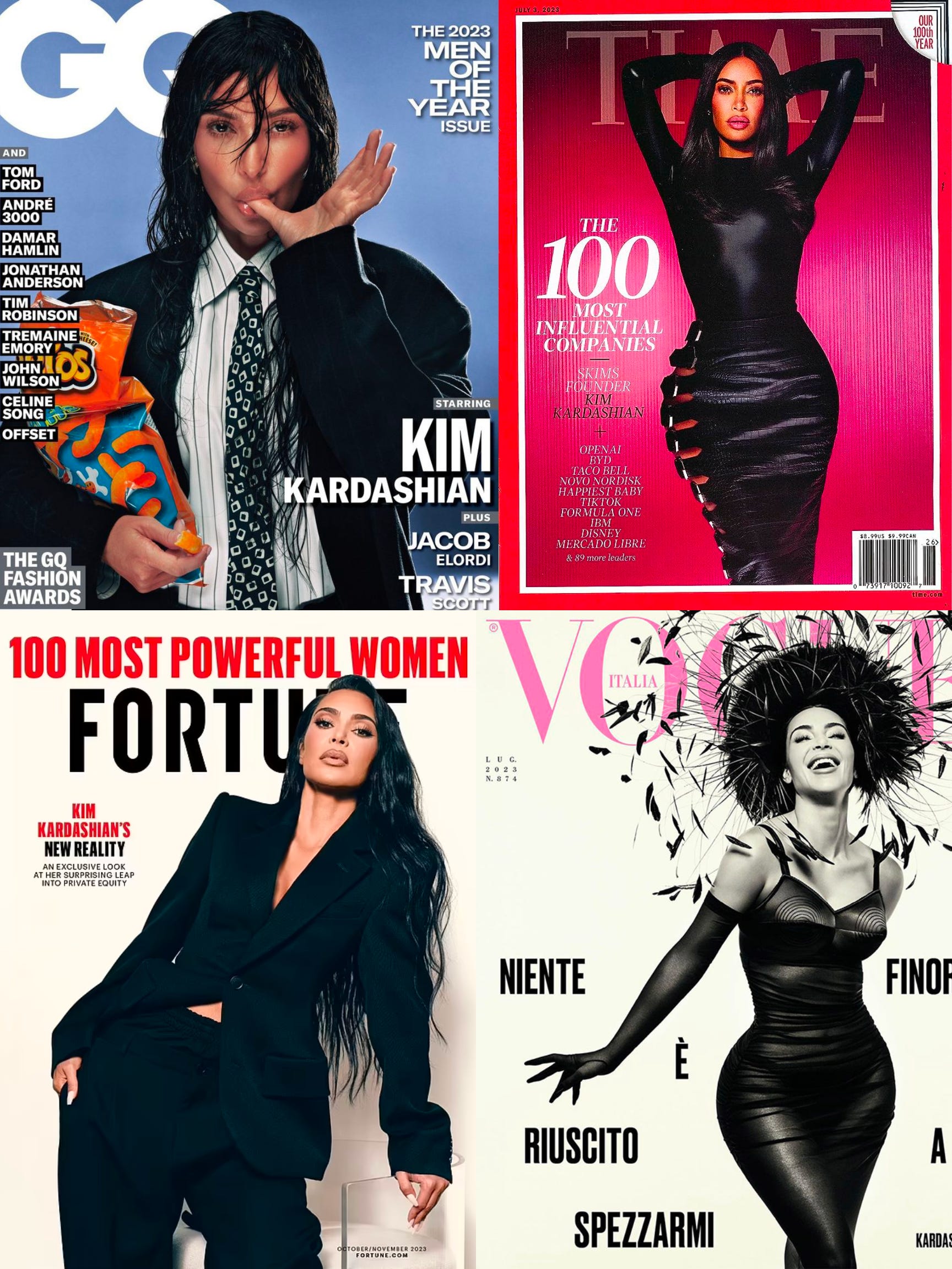 I took a look back at Kardashian’s 2023 to see if she had slowed down at all. And… she hasn’t. This year, she had sixteen major campaign and magazine cover moments, including: