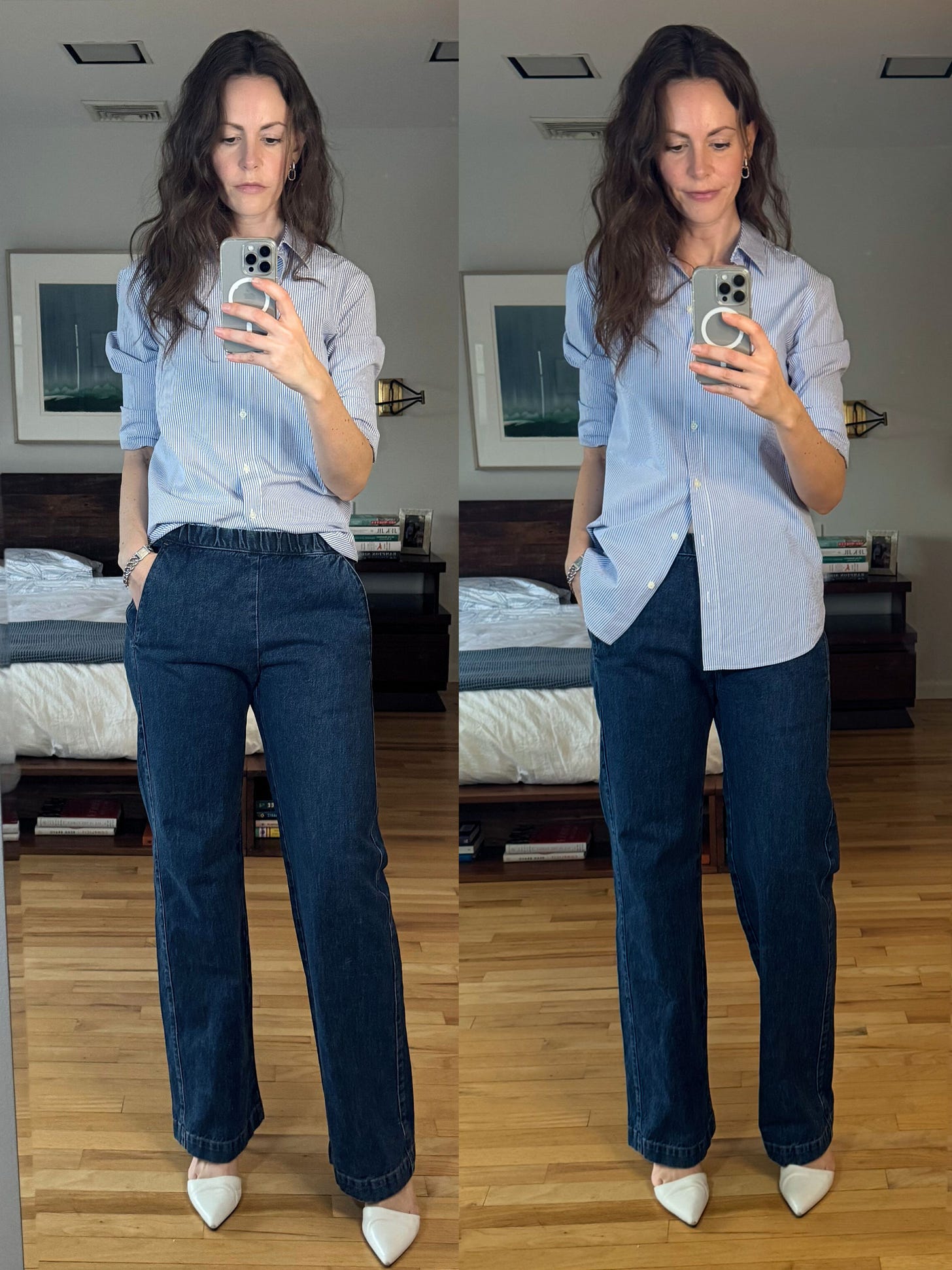 When I was testing sweatpants jeans, I ordered a slew of the compromise pants that kept getting advertised to me on social media. I mentioned in my earlier story that the Gap ones were astonishingly not horrid. Ahead, you can look and judge for yourself.