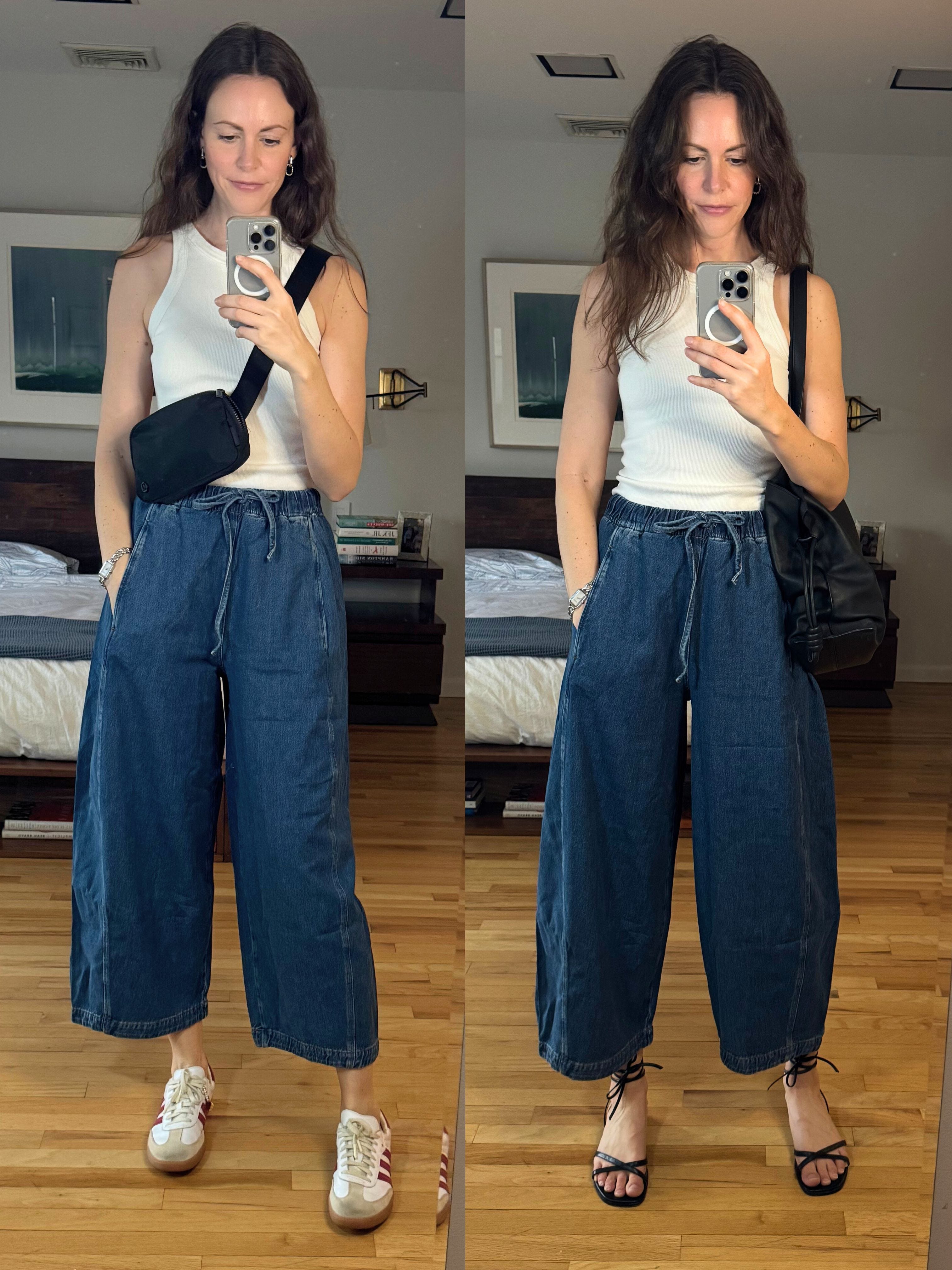 I never felt tempted to get into culottes when they had their renaissance circa what, 2016? Of all the pants I tried, these drawstring jeans from Cos both confused my husband the most and were my favorite of this bunch.