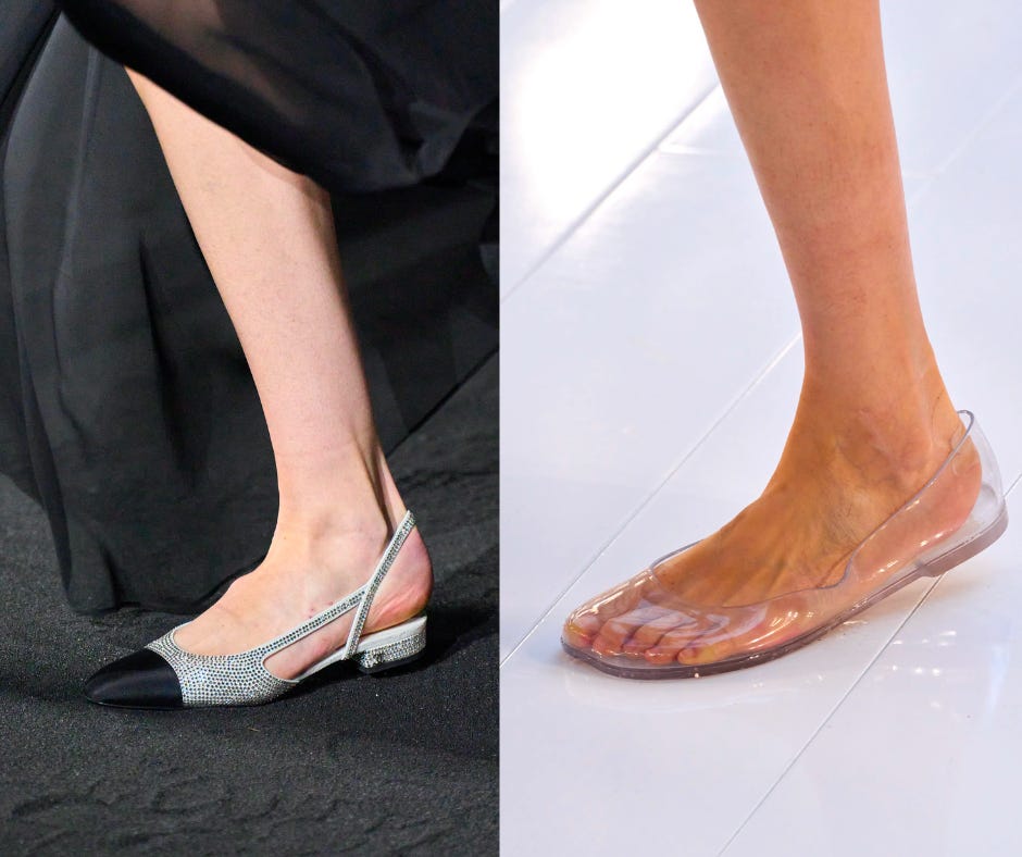 At Chanel, Virginie Viard’s flats and low chunky heels stood out for looking like something you could walk around in all day. And at Loewe, Jonathan Anderson’s clear ballet flats suggested wearing no shoes at all. Which is ultimately what Fendi and Valentino ended up selling us, anyway.