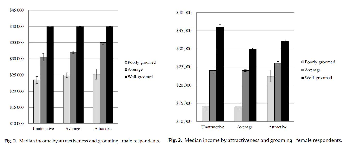 According to a 2016 paper by sociologists Jaclyn Wong of the University of Chicago and Andrew Penner of the University of California at Irvine, grooming (defined in this case as selecting clothing and doing hair and makeup) is actually a bigger determinant of earning potential than attractiveness.
