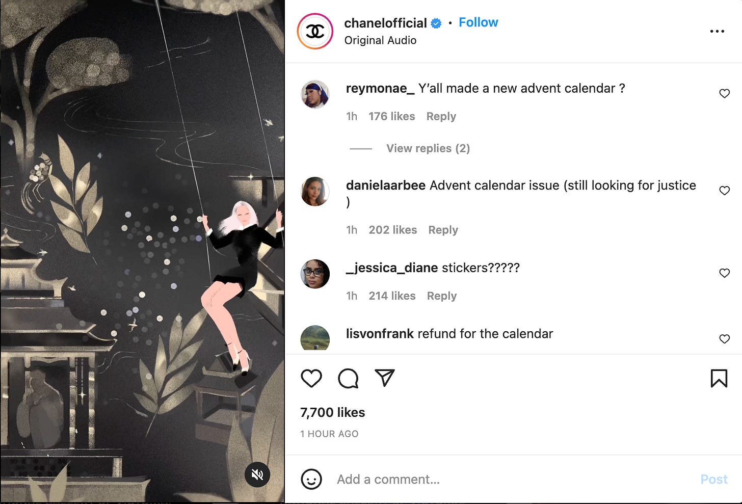 After those TikToks went viral, Harmon said in a subsequent post that Chanel blocked her, but it’s been subsequently pointed out online that it’s unclear if Chanel ever had its own verified TikTok account. Nonetheless, commenters flooded Chanel’s Instagram to drag them over the calendar.